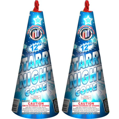 Starry Night 12 inch cone fountains with lots of effects that shoot really high.  Duration over 35 seconds.
